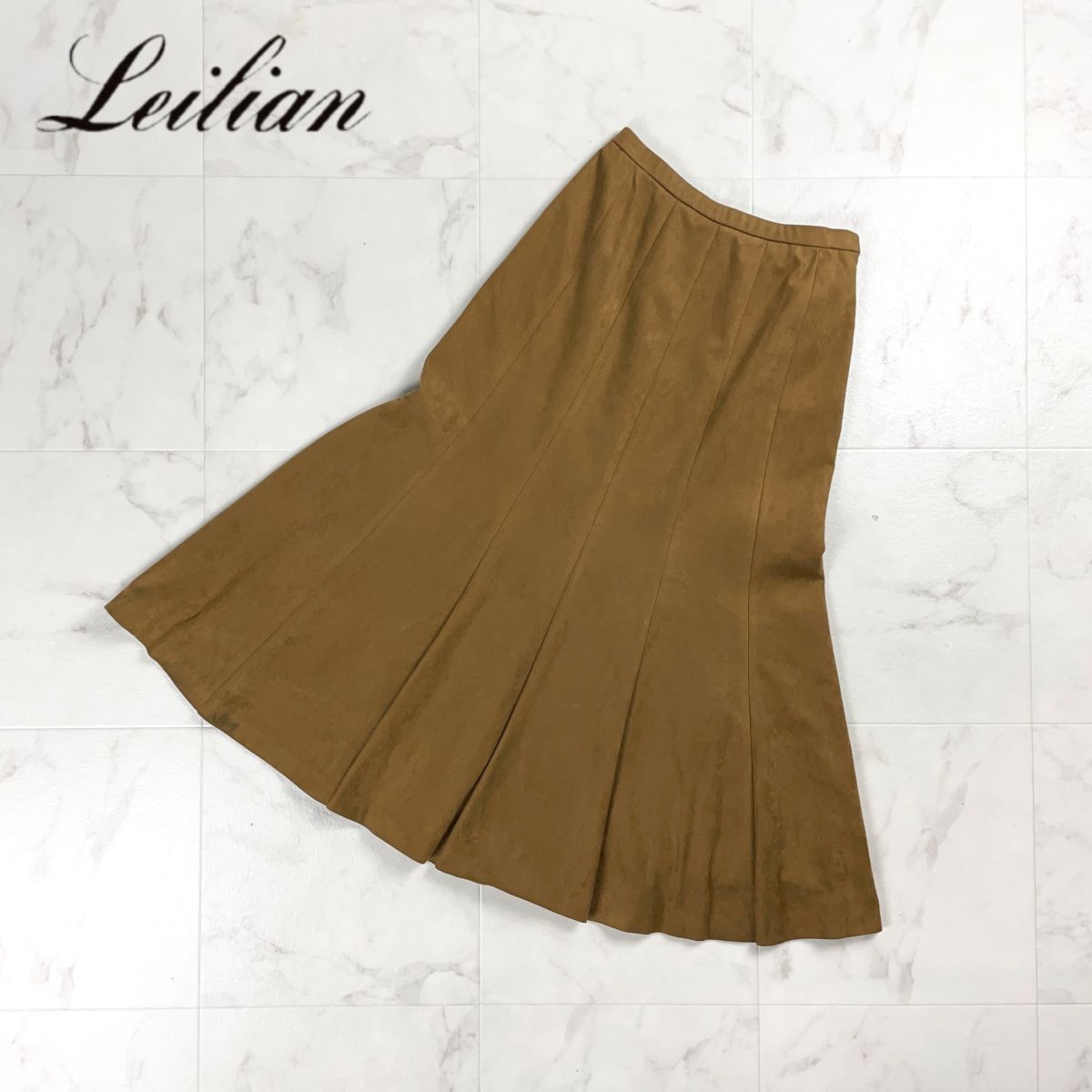 - Leilian レリアン フェイクスウェードマーメイドスカート 裾フレア ロング丈 裏地あり キャメル ブラウン 茶 サイズ7*CD867