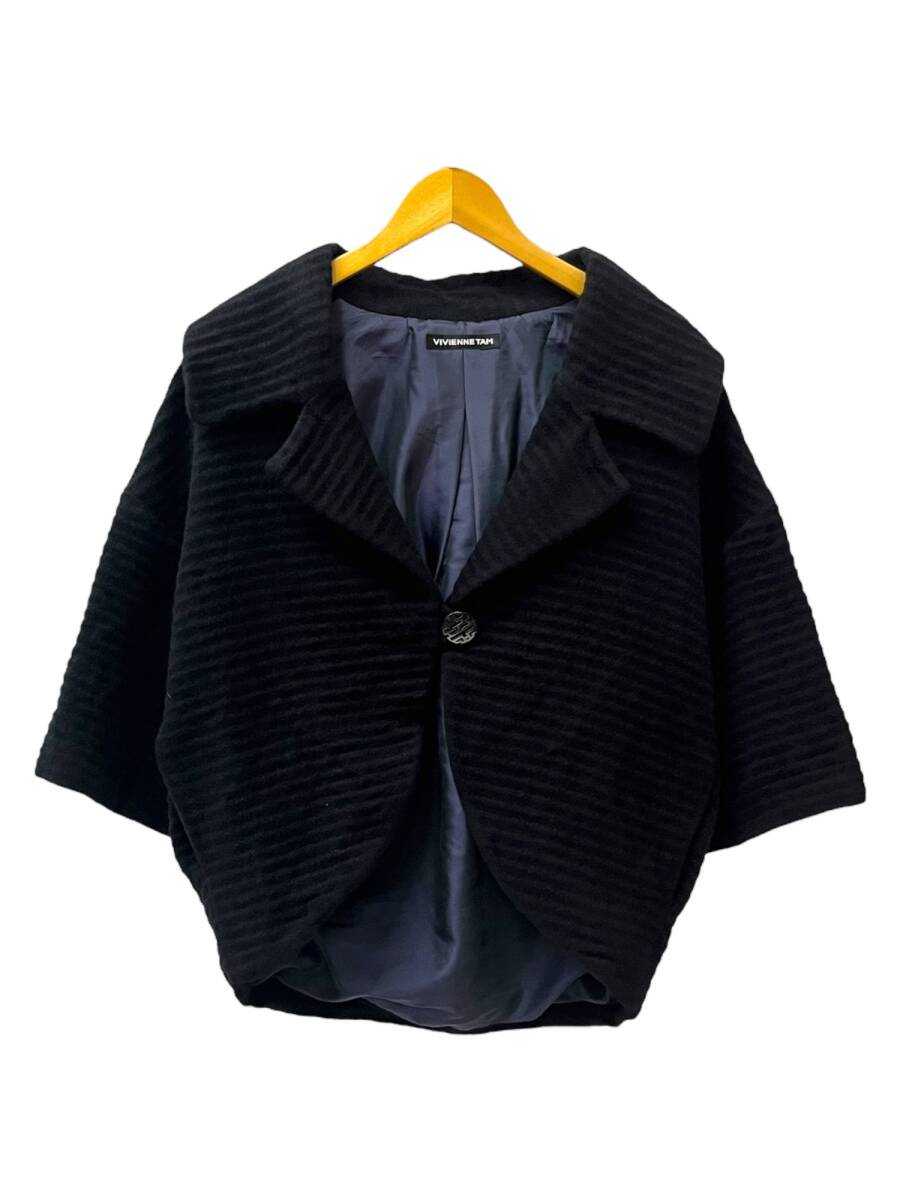 > VIVIENNE TAM (ヴィヴィアンタム) オープンカラー ショート コート ウール 羊毛 羽織 0 ブラック レディース/025