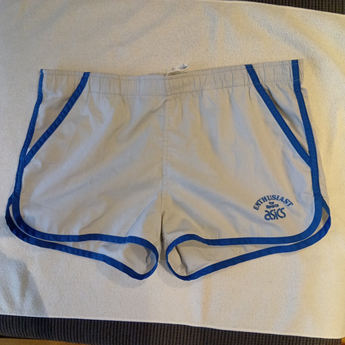 > 昭和レトロ感○〇 アシックスランニングパンツ 昭和末期の普段着的短パンの短さ 使用感あり W76 クリーニングok