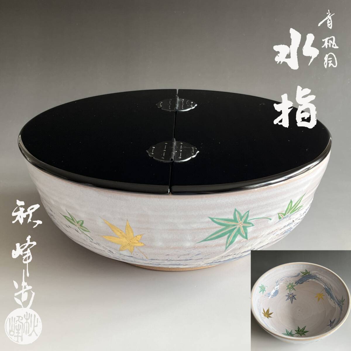 - 中村秋峰作 青楓絵 水指 茶道具 保証品