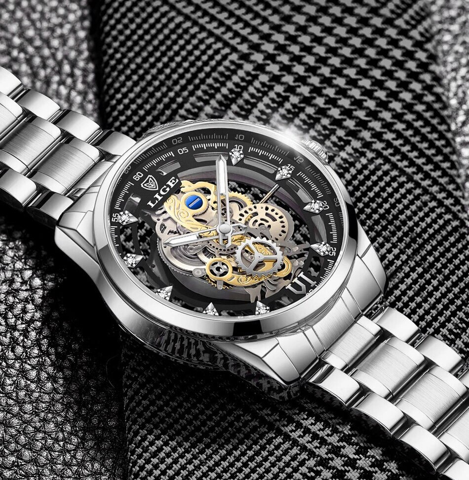 - LIGE スケルトン レトロデザイン 高級腕時計 防水 銀 シルバー