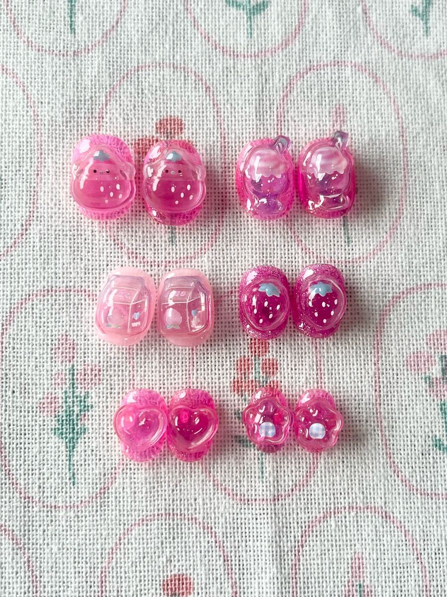- ハンドメイド ネイルチップ ベリーショートオーバル ピンク ボンボンドロップシール