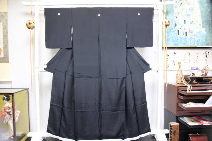 > きもの今昔8607 黒の礼装 袷喪服のきもの 高級正絹羽二重地 広襟仕立てシツケ糸付き未使用品 身丈161cm