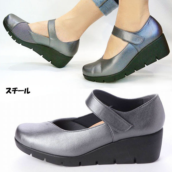 - 38lk 送料無料 ファーストコンタクト パンプス 靴 日本製 楽ちん 痛くない ストラップ切替デザイン 母の日 ウェッジパンプス
