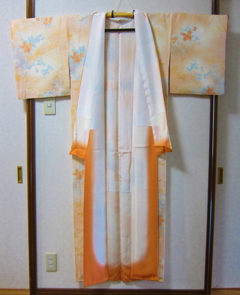 > ⑦着物 合わせの着物 丹後ちりめん 未使用 花柄 リメイク ハギレ アンティーク着物 昭和レトロ