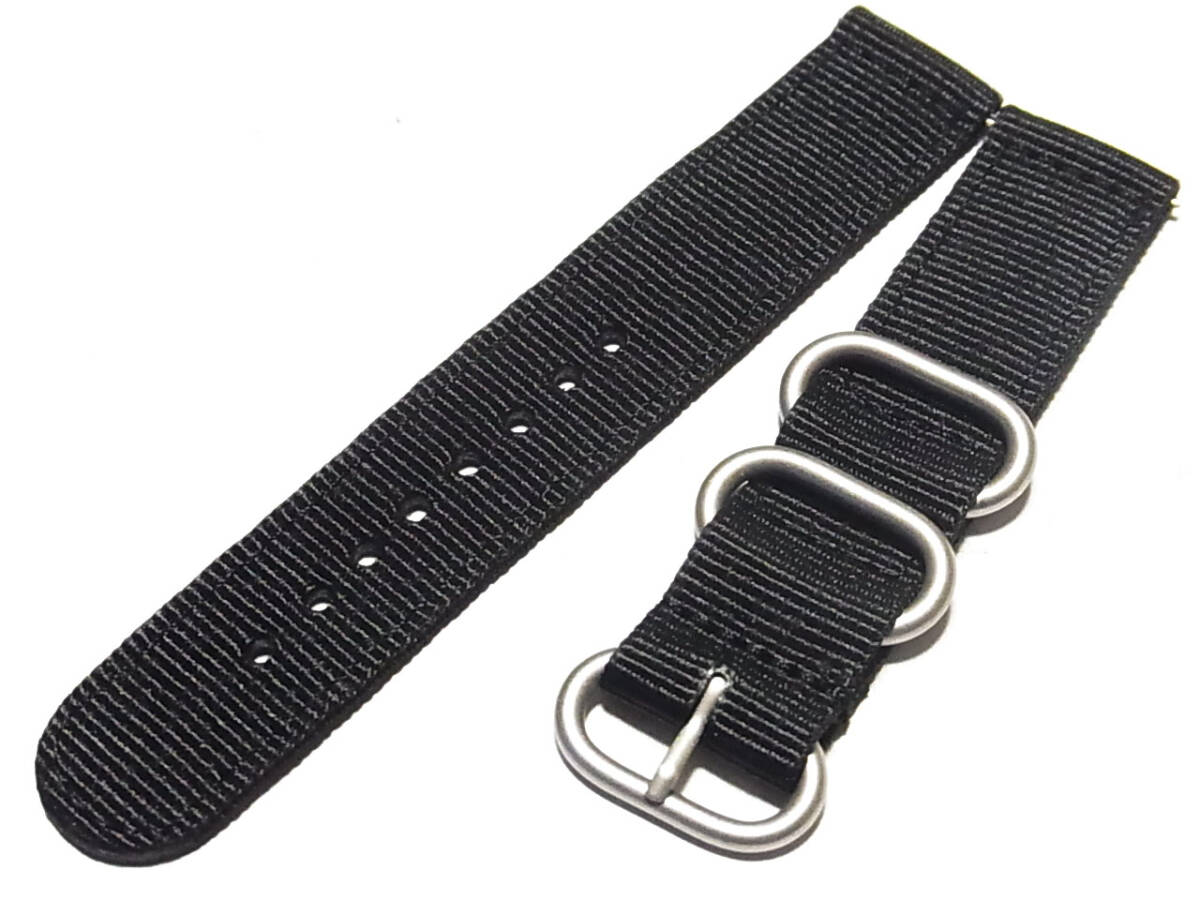 - ミリタリー ナイロンストラップ 厚リング 黒 20mm 3NYMIL6