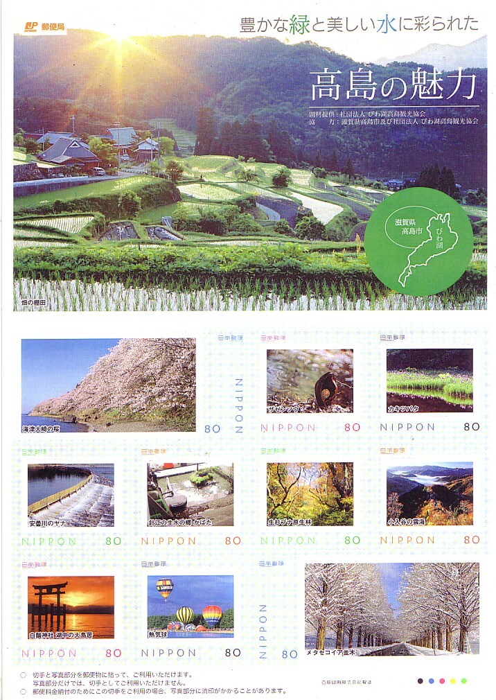 - 「豊かな緑と美しい水に彩られた 高島の魅力」のフレーム切手です
