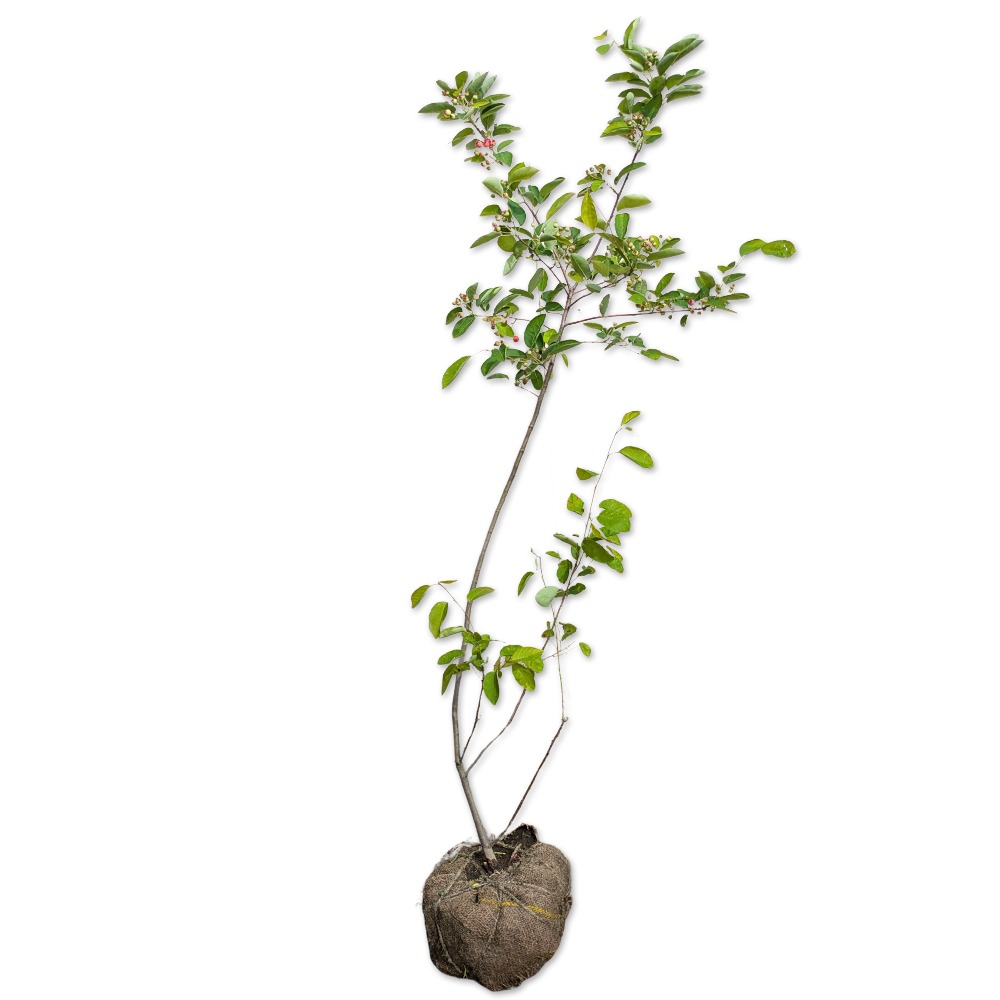 ジューンベリーは落葉低木です。3m前後まで成長します。春には純白の小さな花が咲きます。6月ごろにブルーベリーのような実がなります。秋には鮮やかに紅葉します。冬は落葉します。樹形がすっきりとしていて枝が細めです。四季を通じて楽しめる品種です。果樹として改良されています。