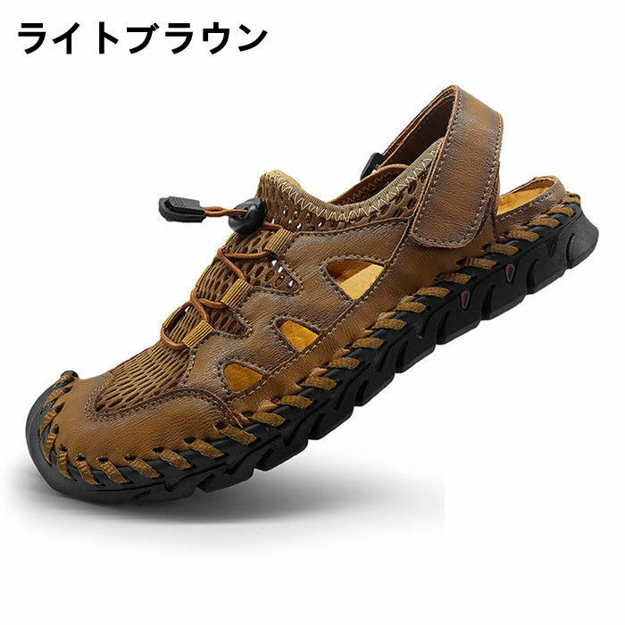 > サンダル スポーツサンダル アウトドアサンダル ビーチサンダル メンズ レザーサンダル Zxe0871 ライトブラウン 27.0cm