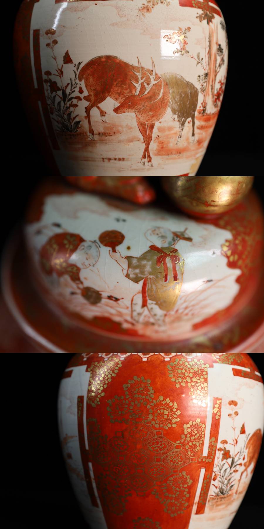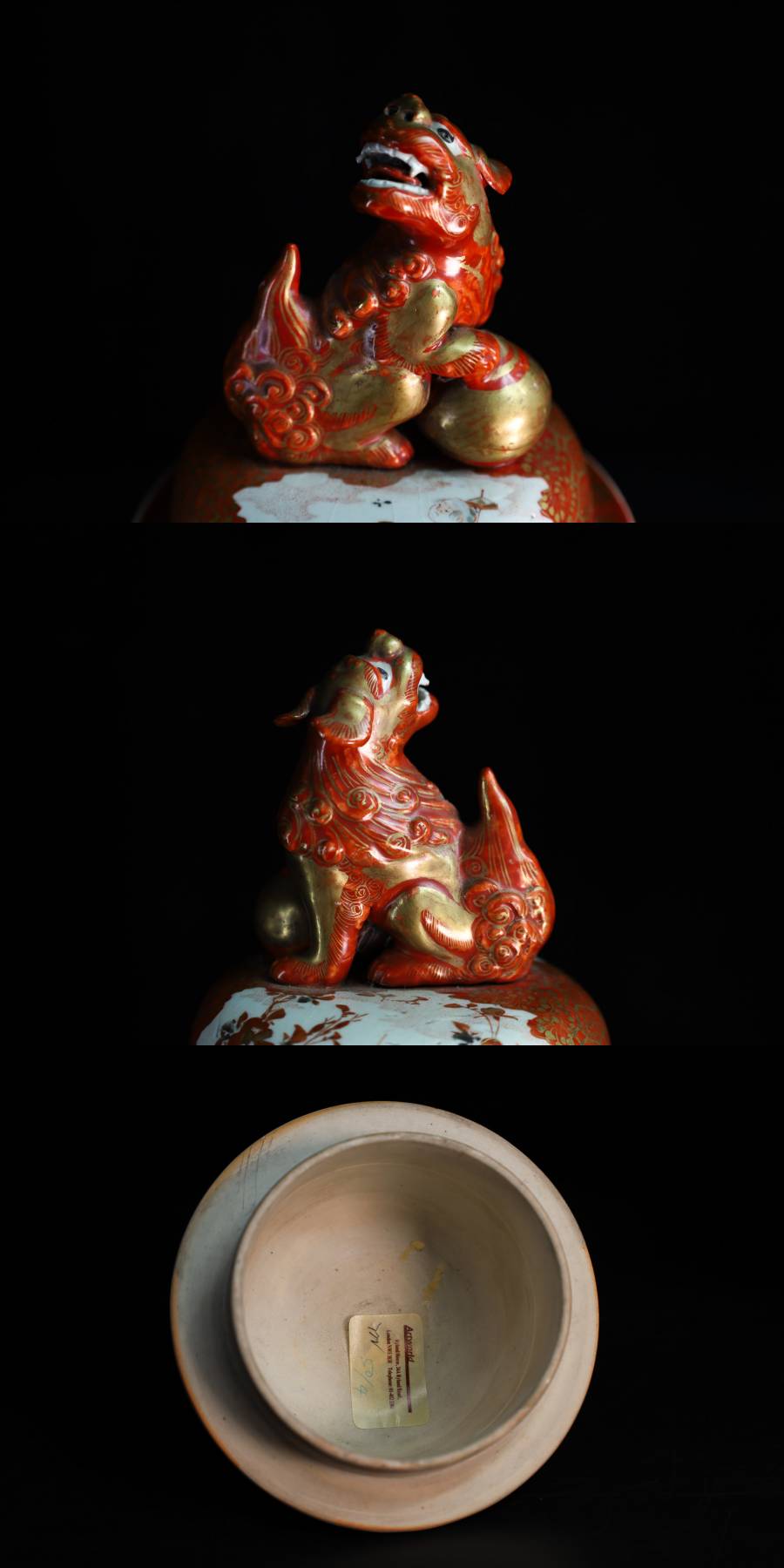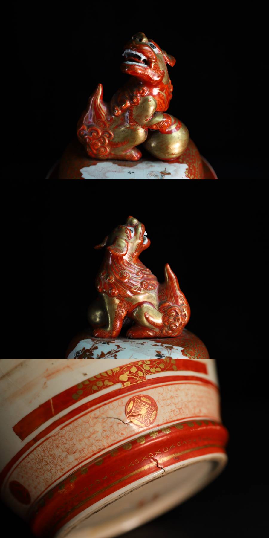 - ◇雅◇ 古美術品 柳宣永 作 完松窯 大日本九谷製 高さc38cm/2495g 獅子摘み赤絵 蓋壷 九谷赤絵 時代物 共箱 /HK.25.5 [J109] TU