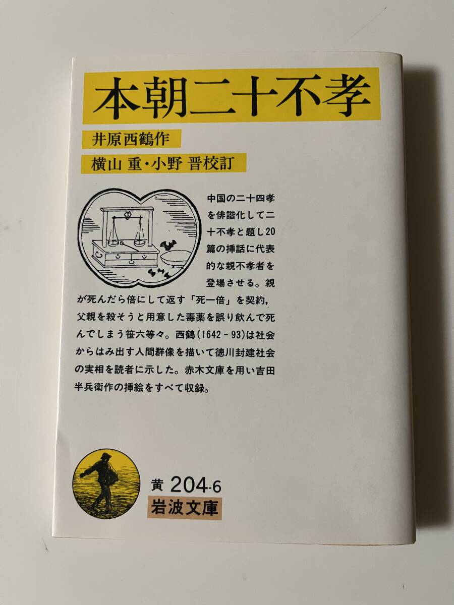- 井原西鶴『本朝二十不孝』(岩波文庫、1988年、17刷)、カバー付。267頁。