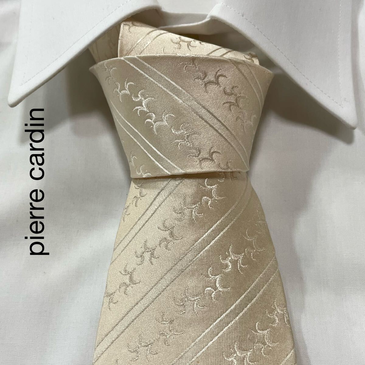- pierre cardin ピエールカルダン ストライプ ジャガード シルク ネクタイ アイボリー TG2164