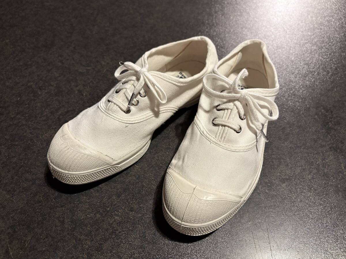 > デッドストック90sビンテージ実物フランス軍アシンメトリーBENSIMON製スニーカー22cmキャンバス白ミリタリー90年代トレーニングシューズ80s