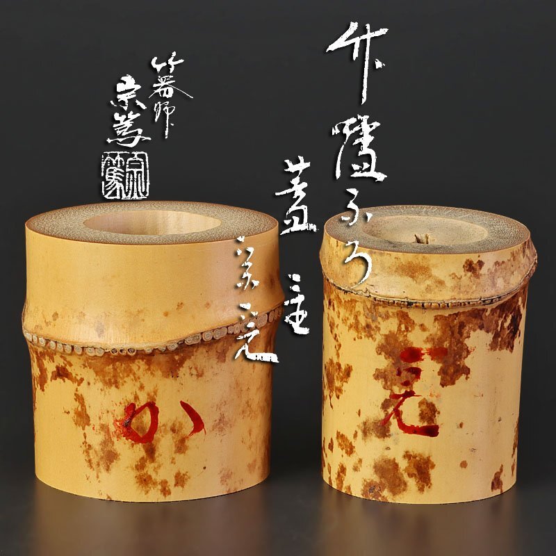 - ★【古美味】竹器師 影林宗篤『堀内宗完(兼中斎)書付』竹炉風炉蓋置 茶道具 保証品 3QWw