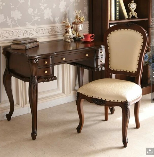 - 特価! アンティーク調 オールドブリテン調 ブラウンウッド マホガニー材 パソコンデスク 文机 合皮 アイボリー チェア セット