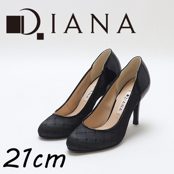 - ◆DIANA ダイアナ レース×エナメル オーバルトゥ ヒール パンプス 黒 ブラック 21cm