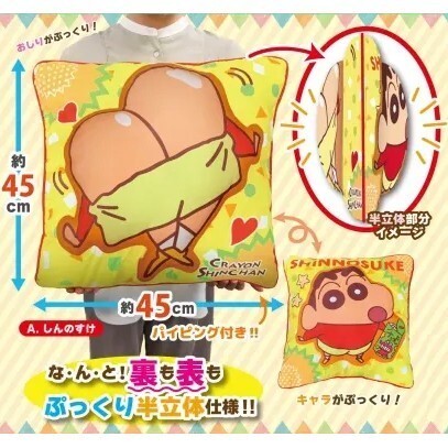 - 【クレヨンしんちゃん】半立体 両面 ぷっくり スクエアクッション しんちゃん 両面 タグ付き 新品 サイズ約45×5cm ケツだけ星人