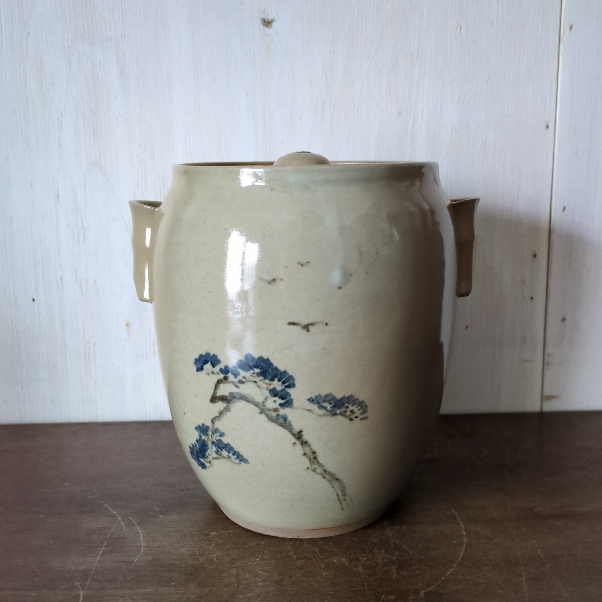 - 虫明焼 松之図 耳付 水指 茶道具 茶器 箱無し