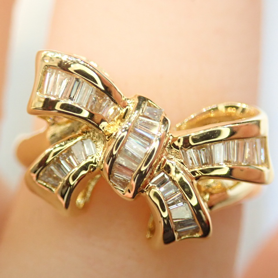 - ■K18YG ダイヤモンドリボン型ファッションリング D:0.30ct■テーパーカットダイヤモンド■指輪■中古磨き仕上げ■