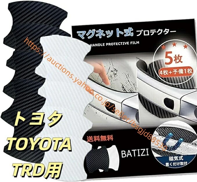 > マグネット式 トヨタ TOYOTA TRD ドアハンドル傷防止 ドアハンドル カーボン マ4枚+予備1枚入り ct-trd