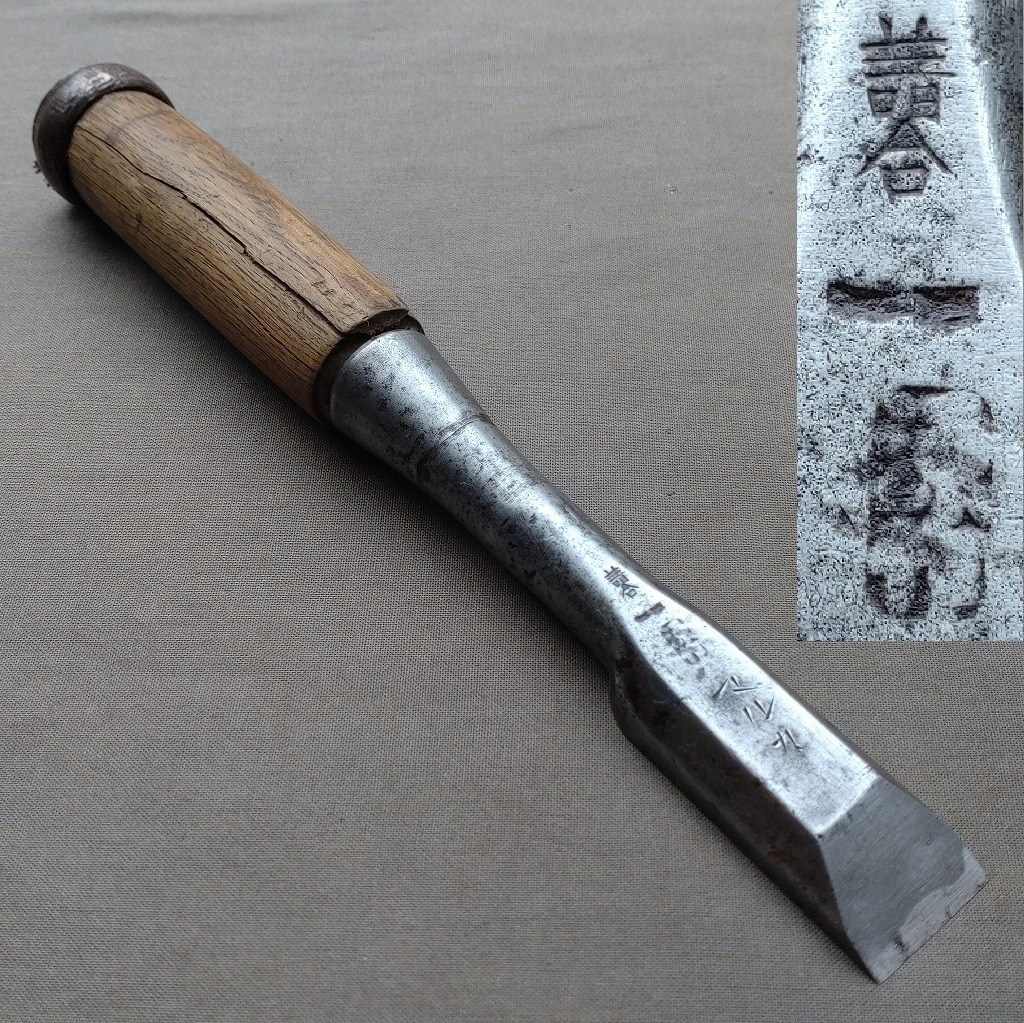 - 叩き鑿 請合 源作 24㎜ 全長約238㎜ のみ ノミ 大工道具 工具 日本製 柄に割れ有 【4217】