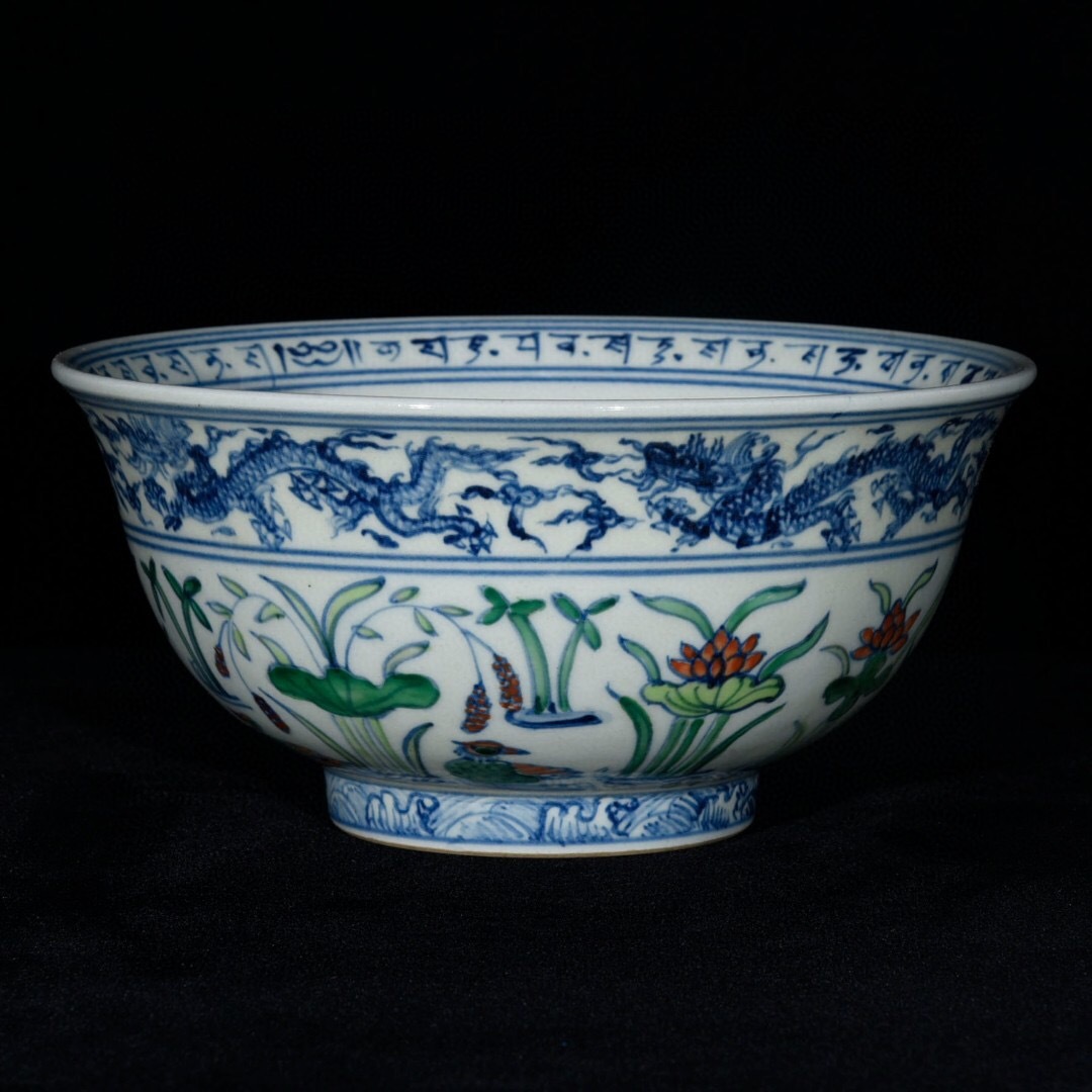 - 『館蔵珍品 明 宣德年製款 古陶瓷品 青花 斗彩 蓮池鴛鴦紋 供碗 陶藝』稀少珍蔵品 古賞物 貴重物品 収蔵品 中国古美術 時代物 古董品