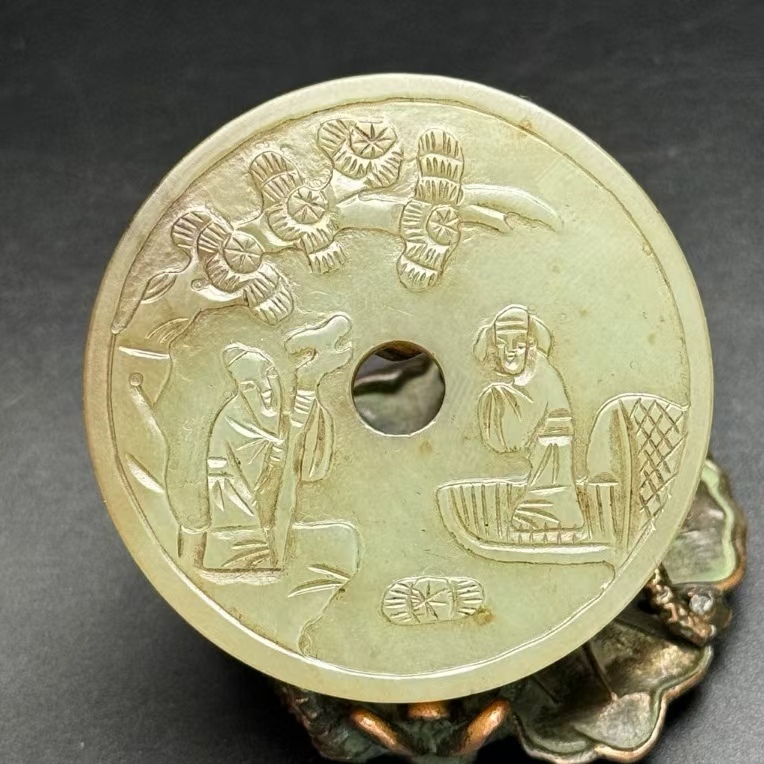 - 和田玉 秘藏 明代玉璧【官伝万代】 唐詩 桃花潭深三千尺,不及汪倫送我情 唐物 古玉彫 天然石 古賞物 置物 旧蔵 玉佩 裝身具 吊墜 6.17