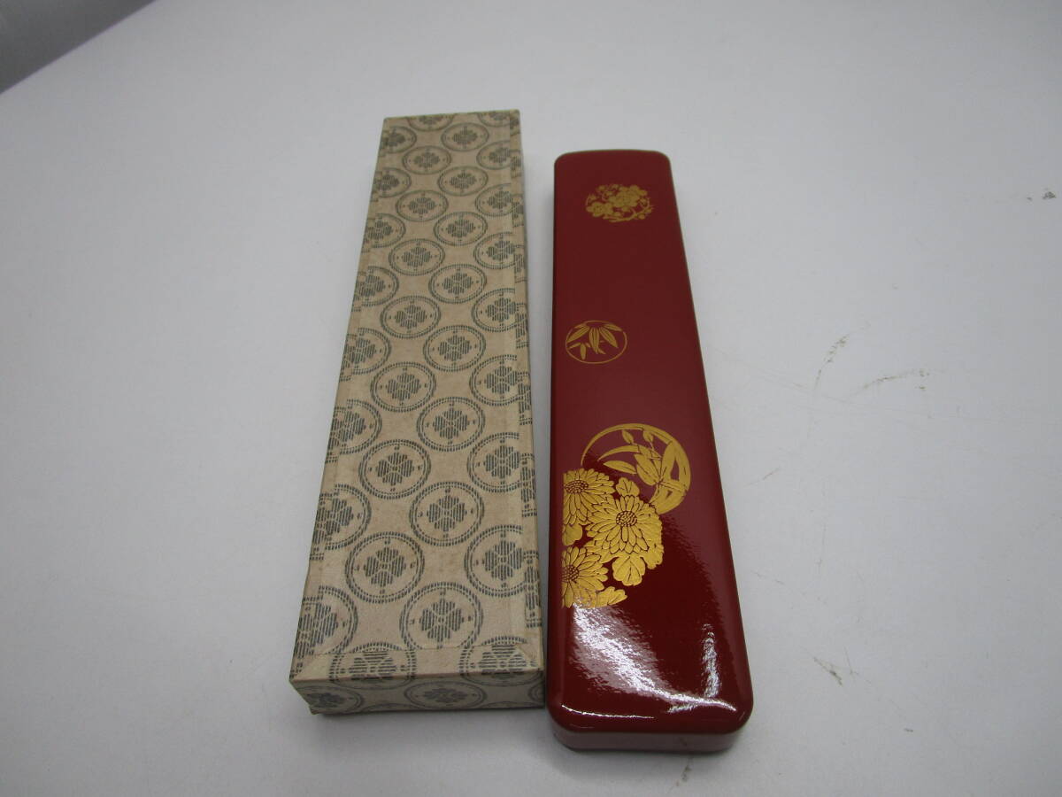 - P075★箸入れ 箸箱 筆入れ 漆器★未使用品