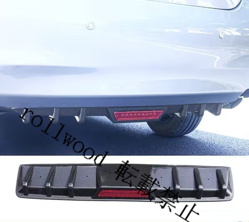 > 汎用 LEDフォグ付き リアディアンダーフューザー アンダーフラップ リアスプリッター カナード マーカー F1ランプ 素地ブラック