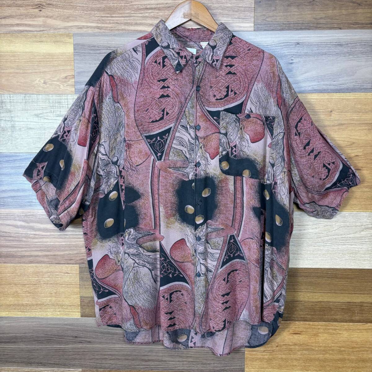 - 90s CAMPUS 総柄 レーヨン シャツ 半袖シャツ サイズ メンズ XL 90年代 VINTAGE ビンテージ ヴィンテージ アメカジ 古着 r25052702