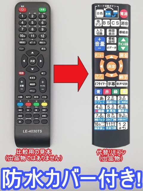 > 【代替リモコン55】防水カバー付 TEES LE-4030TS 互換 送料無料 (ティーズ 液晶テレビ T's NETWORK)