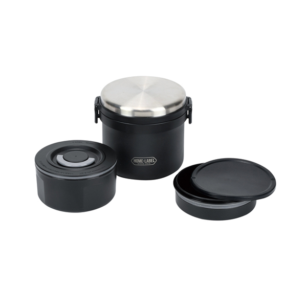 - ホームレーベル全真空ステンレスランチジャー1000ブラック