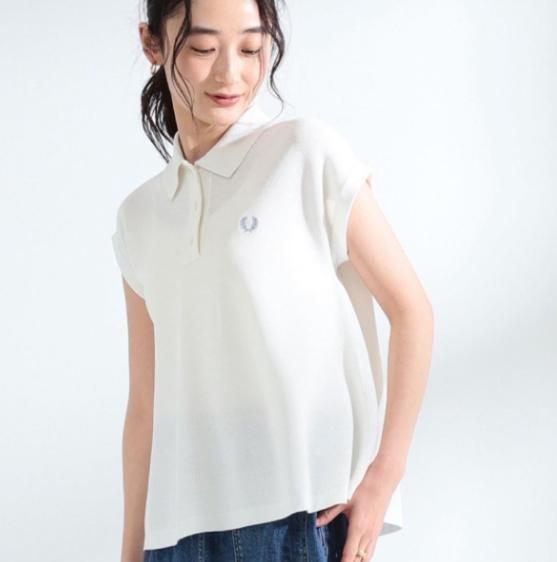 - フレッドペリー ポロシャツ ノースリーブ UK10 胸元ロゴ刺繍 ホワイト