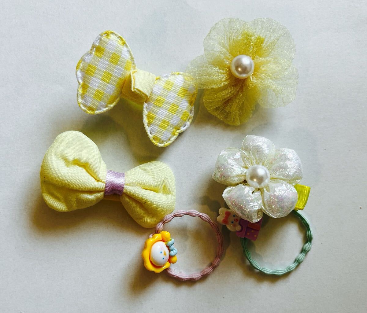 - 可愛いヘアクリップ☆ヘアピン ヘアゴム♪イエロー きいろ②髪飾り キッズ 子供 ヘアゴム リボン