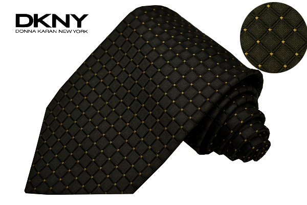 > N-3037★送料無料★超美品★DKNY ダナキャランニューヨーク★日本製 ブラック黒色 チェック柄 ピンドット柄 豪華な織り生地 シルクネクタイ