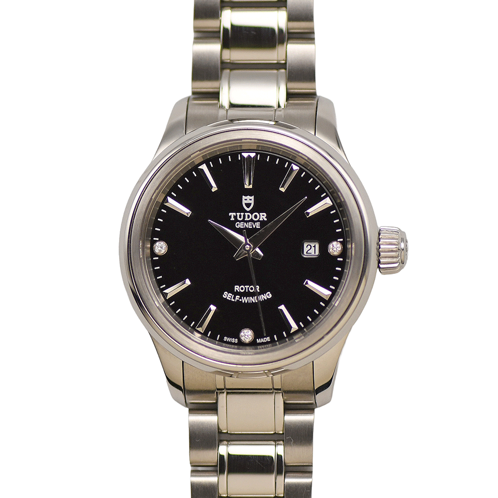 - TUDOR チューダー チュードル STYLE スタイル オートマティック 12100 ブラック 黒文字盤 3Pダイヤ入り レディース 女性用 腕時計 中古