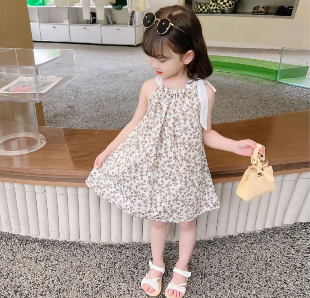 - 【新品タグ付き】小花柄バルーンワンピース 90cm 肩リボン 韓国子供服 夏