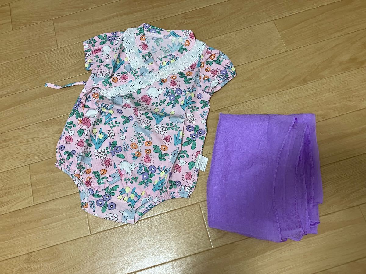 - USED☆ベビー甚平/帯付き/うさぎ柄/ピンク/80cm