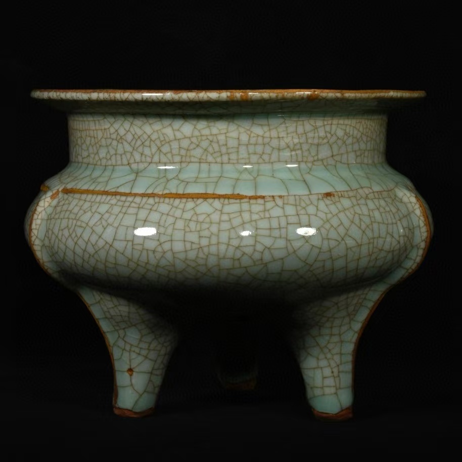 - 宋官窯 汝磁 秘藏 ・天青釉地鬲式炉・香炉 磁器 酒器 茶器 唐磁 染付 陶磁器 收蔵品 古美味 時代物 古美術 古置物 希少珍品 中國文玩6.117