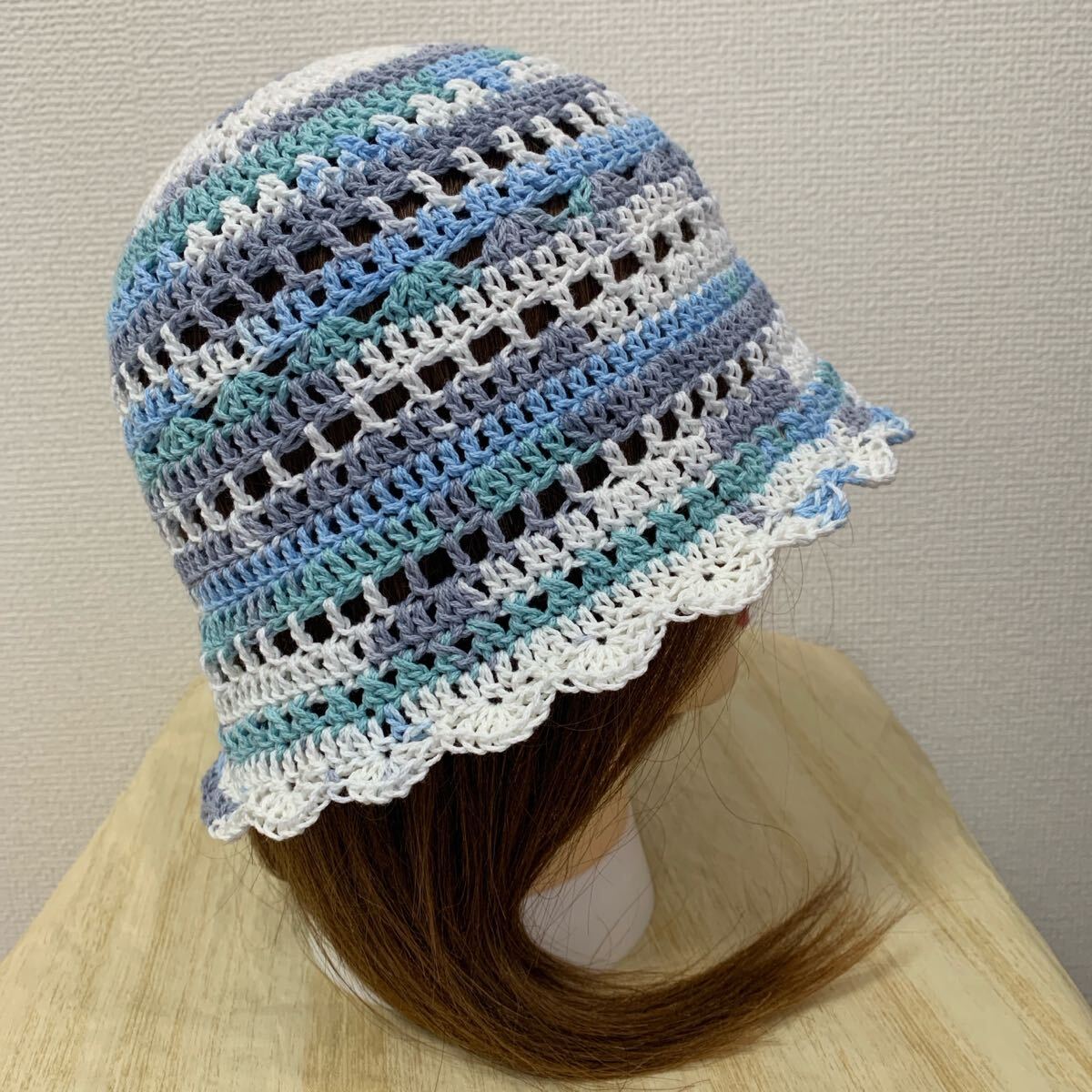 - 【a112】コットン100% レース編み フリル 夏空 バケットハット 帽子