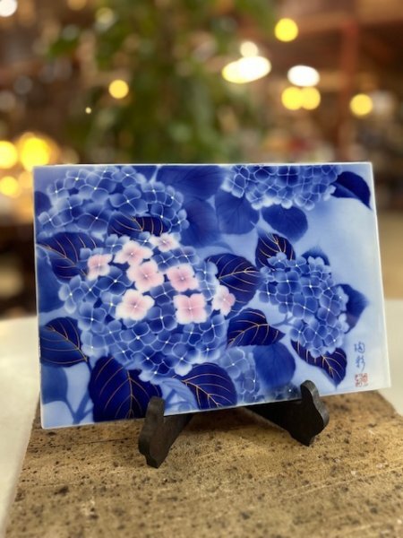 - 【ecorio/エコリオ】ヴィンテージ 深川製磁 陶板 紫陽花 陶彩