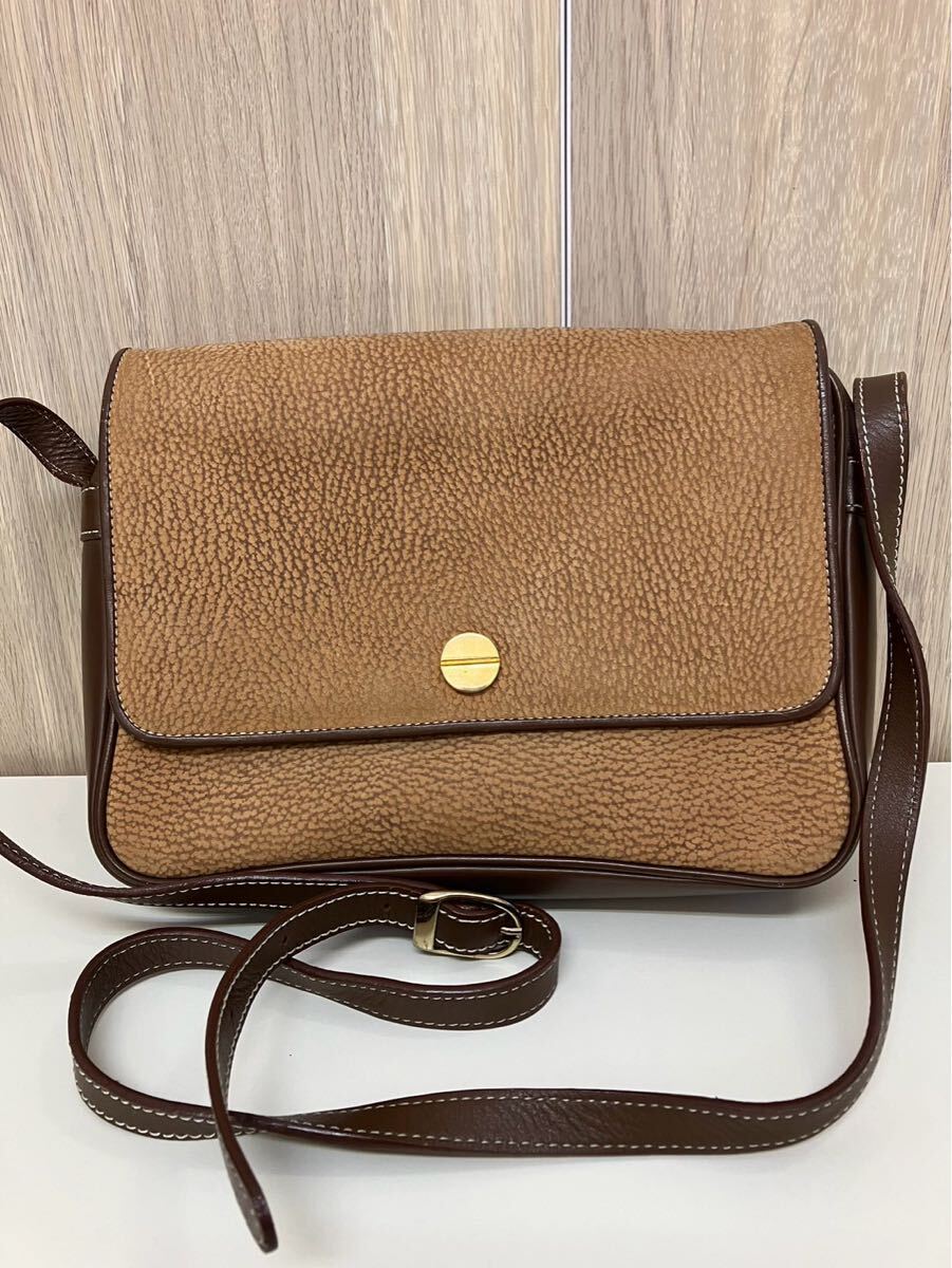 - 【中古品】BORBONESEボルボネーゼ レザーショルダーバッグ 茶ブラウン 斜め掛け かばんバッグ 現状品