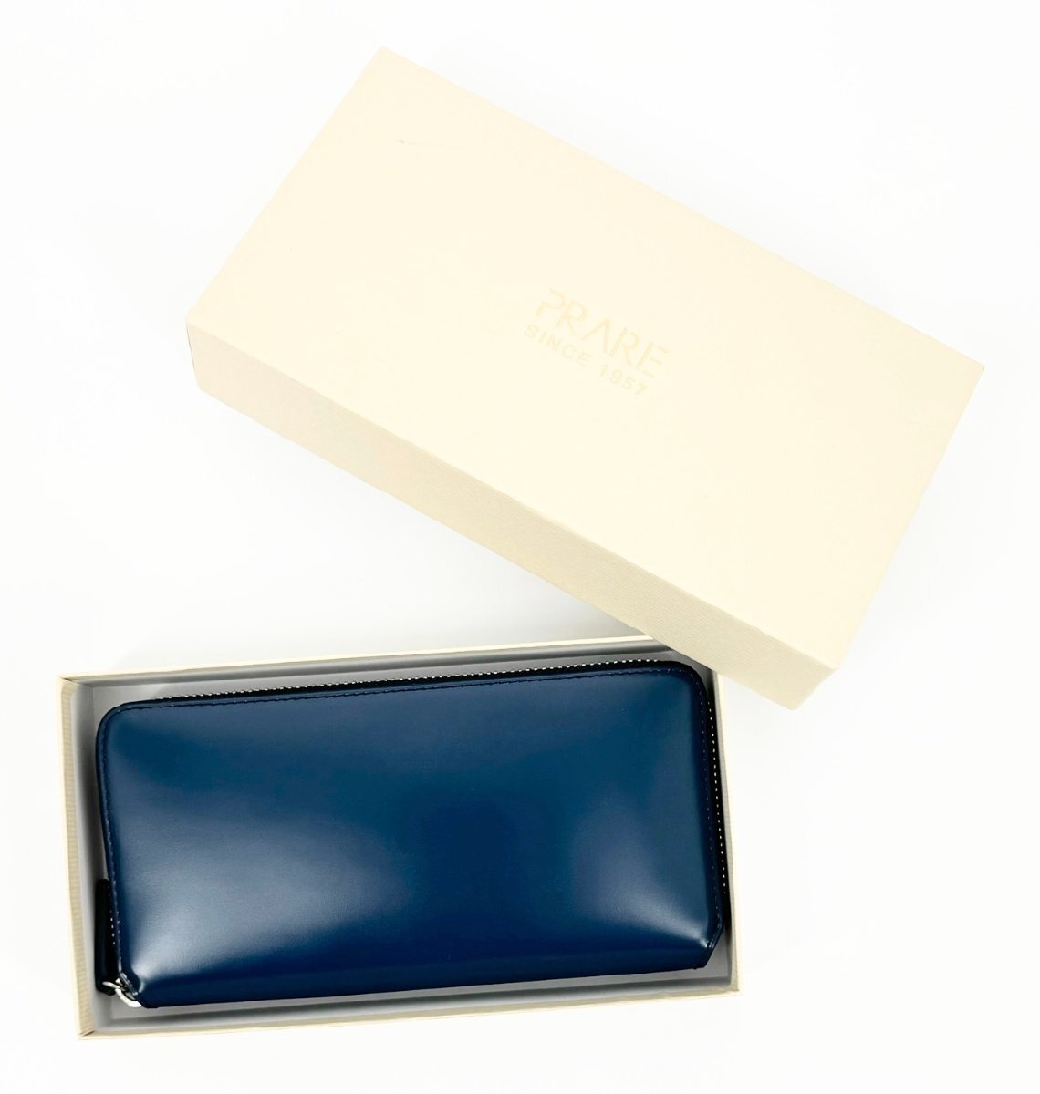 - 未使用品 Prairie プレリー コードバン レザー 馬革 本革 ラウンドファスナー 長財布 NP12030 紺 日本製 定価¥38,500- 箱付