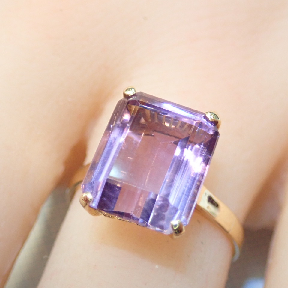 - ■K18 アメシストリング■王冠透かし 穴透かし■アンティーク 昭和レトロ■指輪■中古磨き仕上げ■