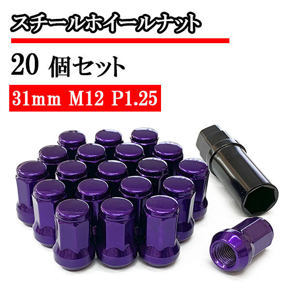 - 袋ナット スチールナット ホイールナット 20個 ロックナット 化粧ナット 車 ドレスアップ おしゃれ 31mm M12×P1.25 パープル 送料無料