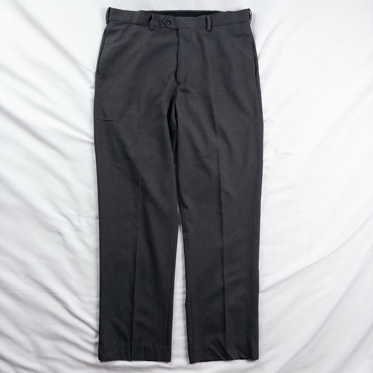 > US Vintage 00s AVANE ポリエステル100% ヘリンボーン ノータック グレー 灰色 ドレープ ワイド ドレス デザインスラックス トラウザーズ
