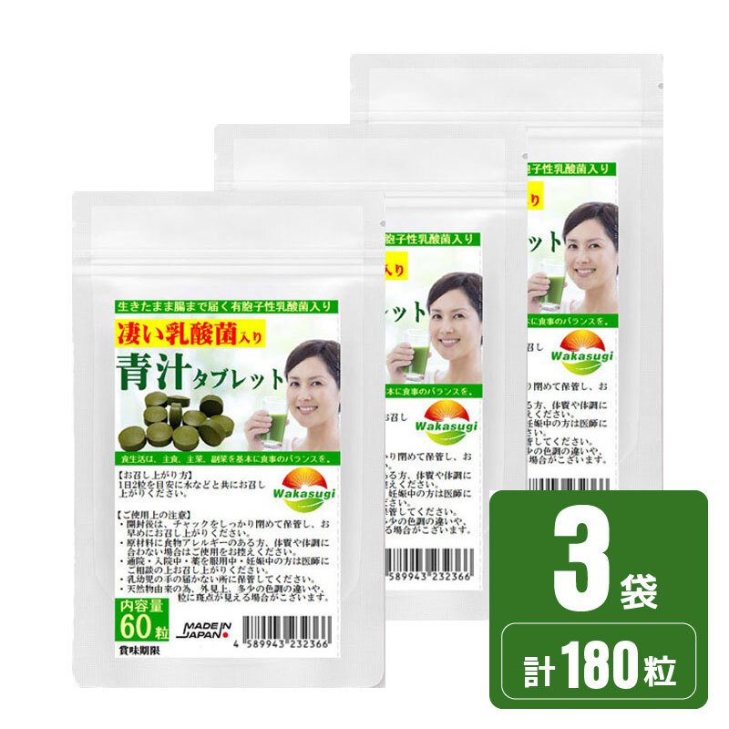 - 有胞子性乳酸菌入り青汁タブレット 60粒 3袋セット 計180粒 3種青汁 大麦若葉 熊笹 明日葉