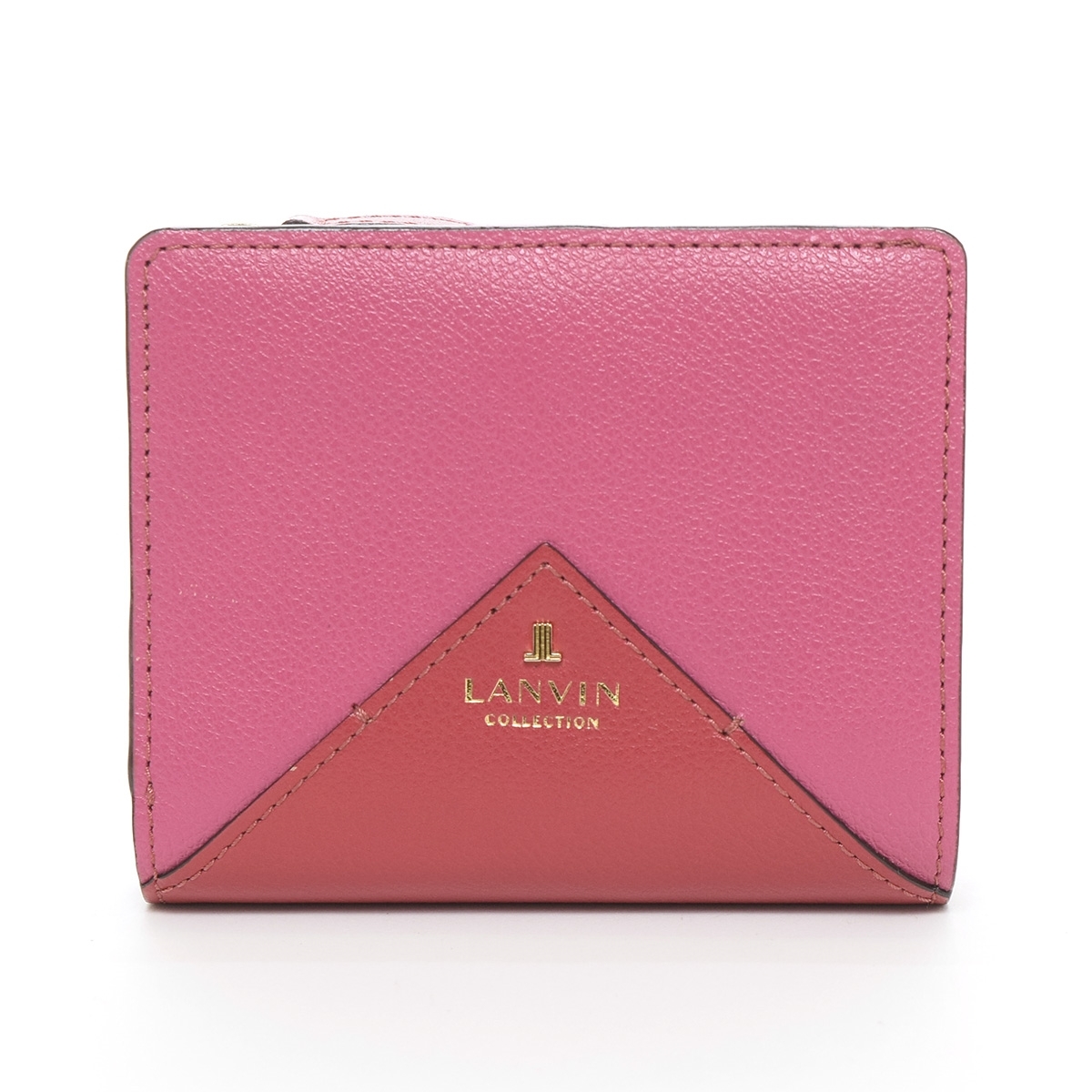 - ■491507 新品同様 LANVIN COLLECTION ランバン ●二つ折り財布 ミニウォレット レザー レディース ピンク レッド