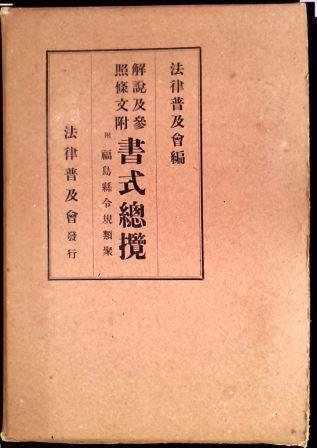 - (古本)解説及参照条文付書式総覧 付福島県令規類聚 第7版 法律普及会 函付き 法律普及会 HK8353 19381005発行
