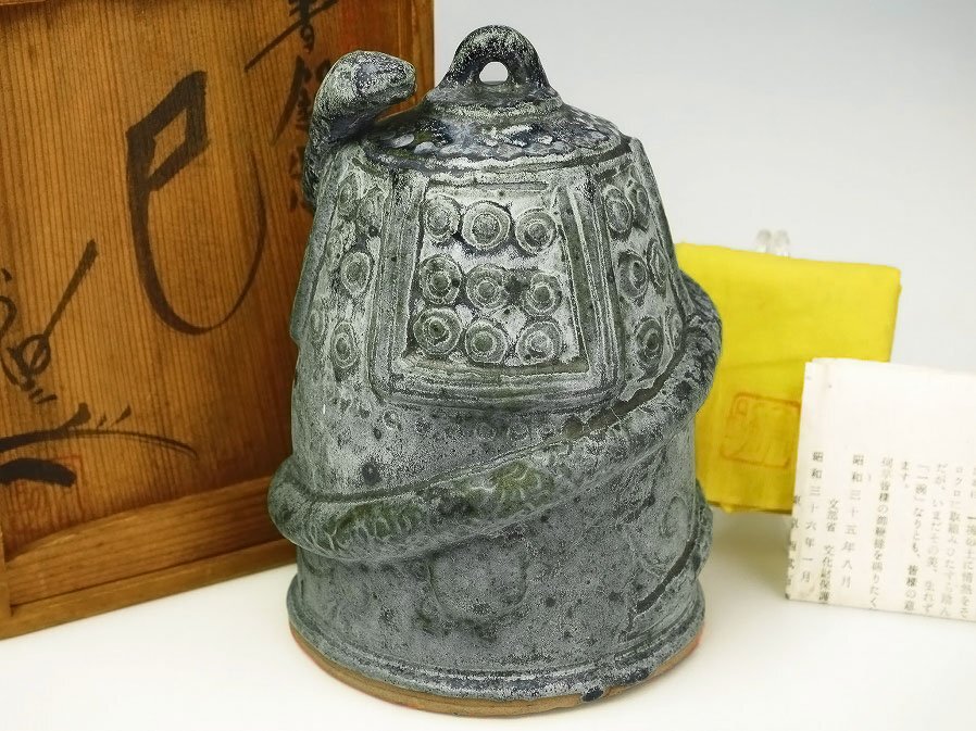 - ■真作保証■【八代 加藤宇助】作 青銅釉 置物「巳」 共箱■父:加藤宇三郎■